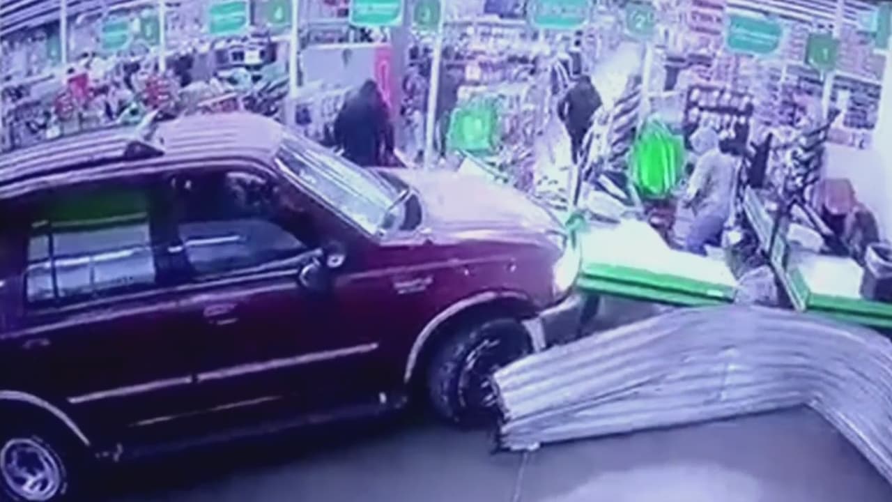 Los sujetos rompieron la puerta de entrada de un centro comercial en México con una camioneta, pero el botín que lograron llevarse no fue lo que esperaban.