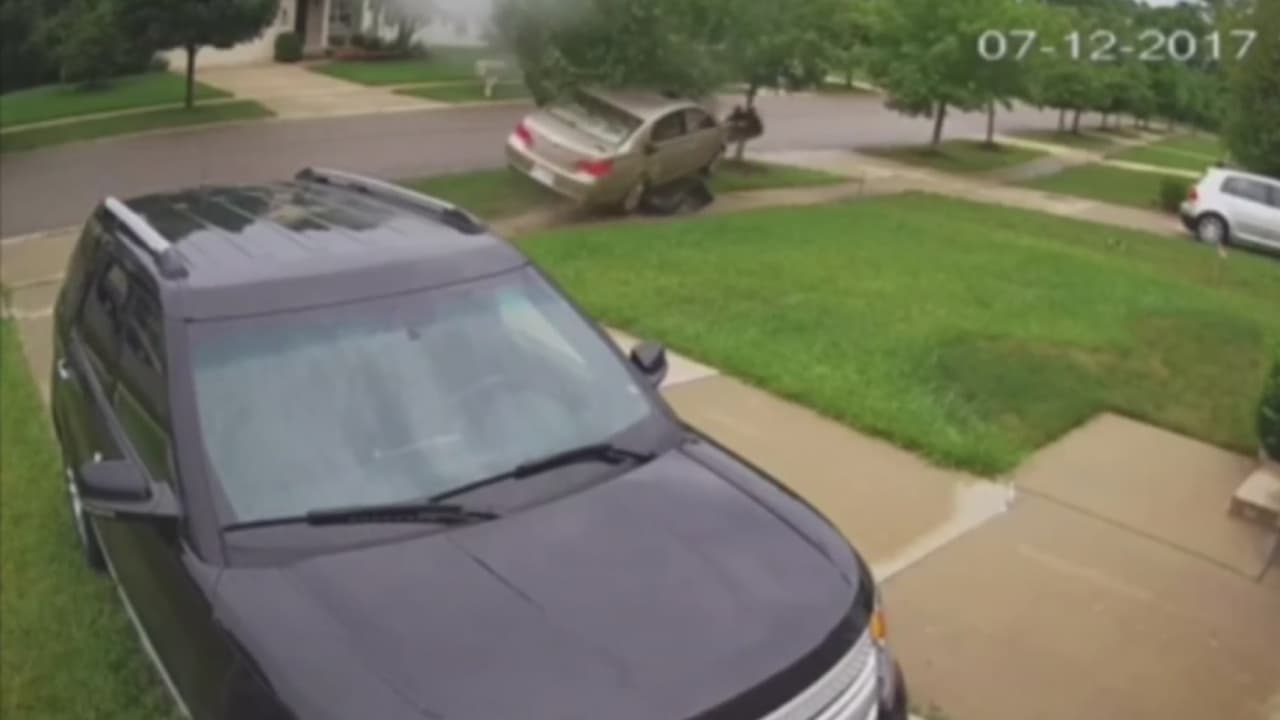 El vehículo, que había sido robado, terminó ruedas arriba en el patio de una casa en un vecindario en Michigan. Los cuatro ocupantes del auto se dieron a la fuga.