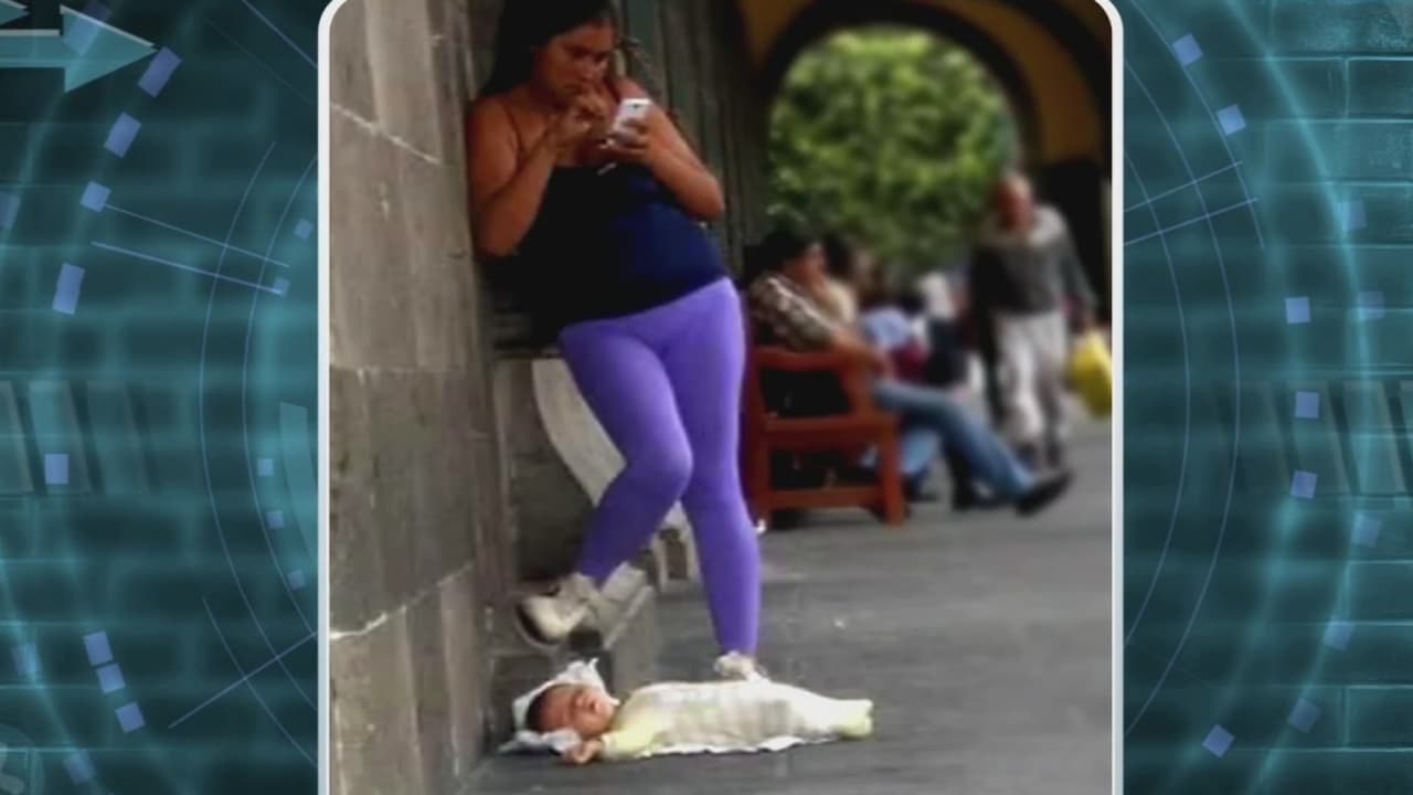 #LadyWiFi dejó a su bebé en el suelo para poder utilizar su teléfono