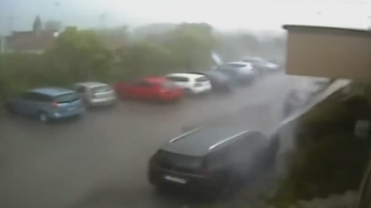 En las imágenes se observa como la fuerza del fenómeno natural daña estructuras y afecta autos en en una zona de fábricas en Grecia.