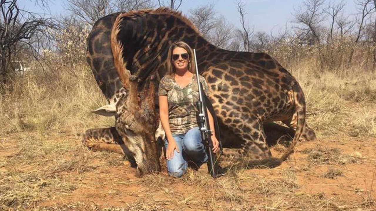 Las polémicas fotos de una mujer exhibiendo a una jirafa tras cazarla