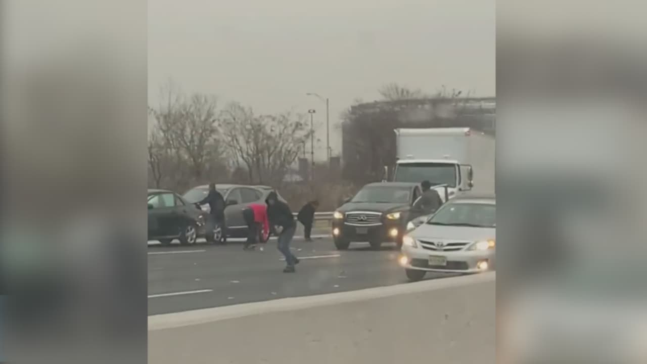 Los billetes cayeron desde un vehículo blindado y muchos abandonaron sus autos en medio de la vía para llenarse los bolsillos.