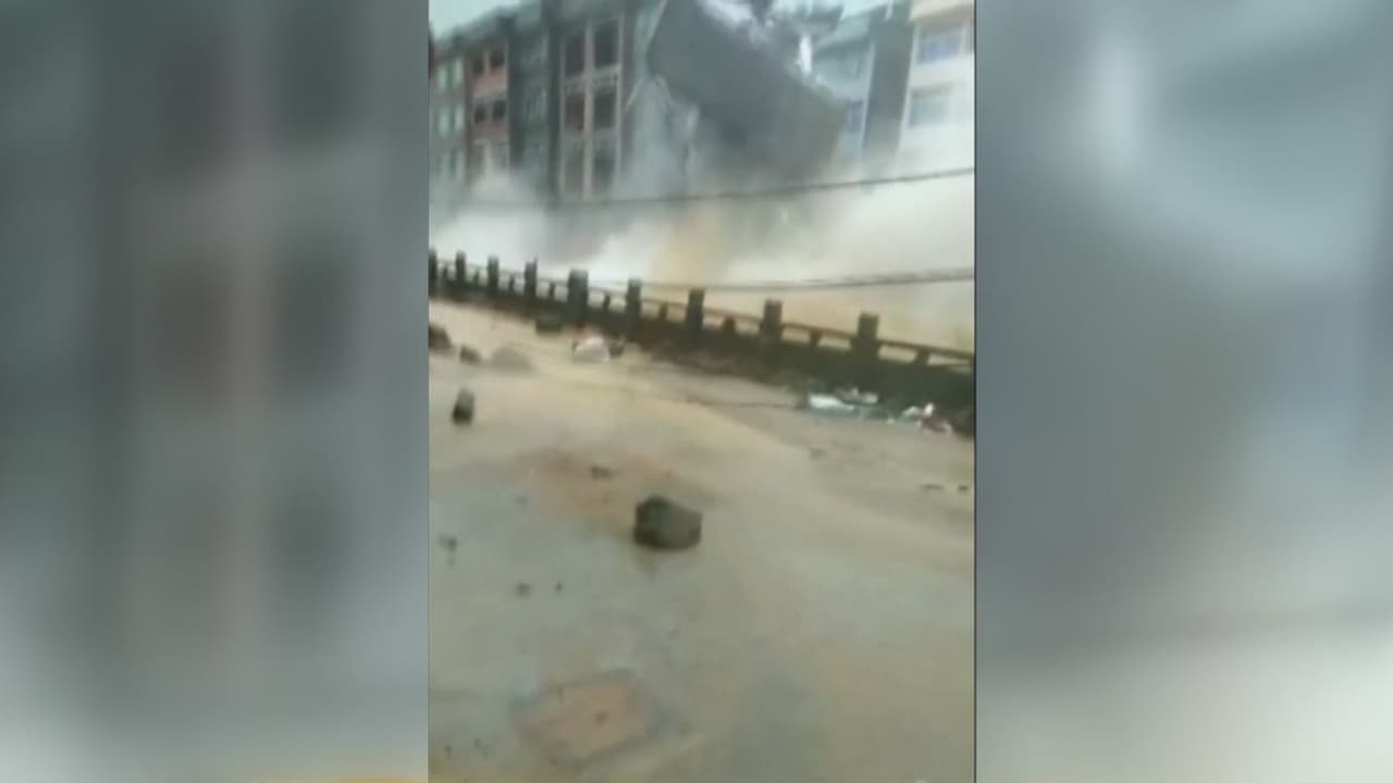 Lluvias torrenciales en China provocan derrumbe de edifico de cuatro pisos