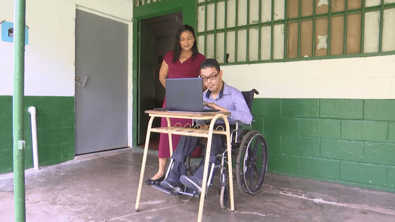 Ello no habría sido posible sino fuera por la ayuda de su madre, quien lo acompaña todos los días al salón de clases y toma notas para que el joven pueda repasar las lecciones y aprender cada día más.