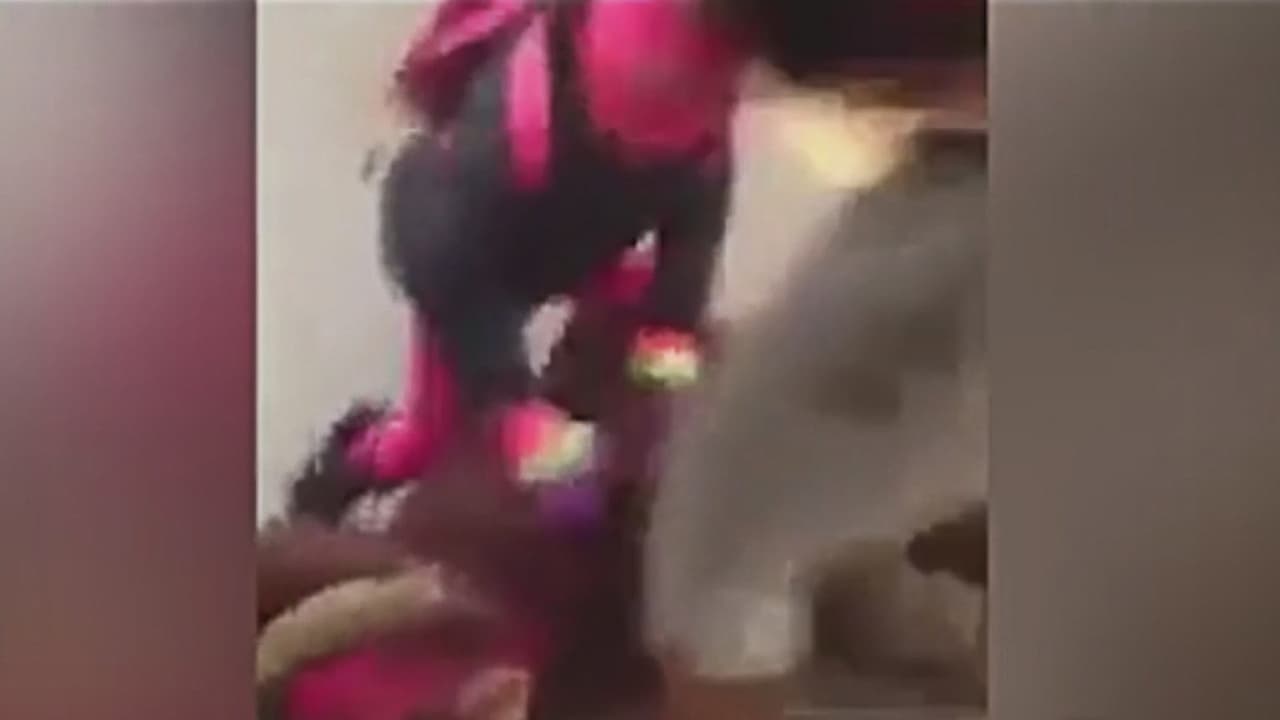 Las imágenes muestran la pelea de la madre con otra mujer porque, supuestamente, esta había empujado a su hija de cinco años de edad. En medio de la pelea, la atacante anima a la menor a que patee a la mujer, tendida en el suelo.