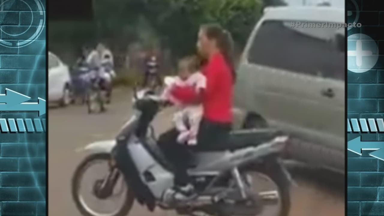 Una mujer que conducía una moto sin protección y con una bebé en brazos, sufrió un accidente.