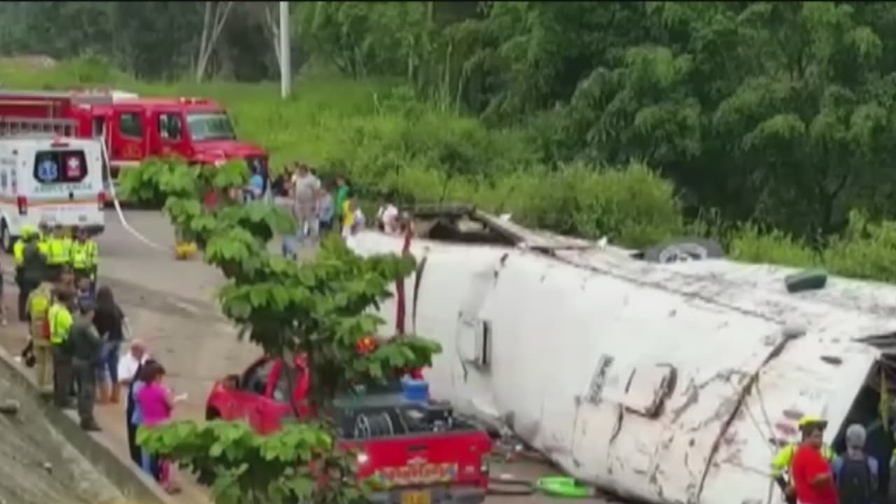Más de 40 heridos quedan sobre una autopista de Colombia tras volcamiento de autobús turístico