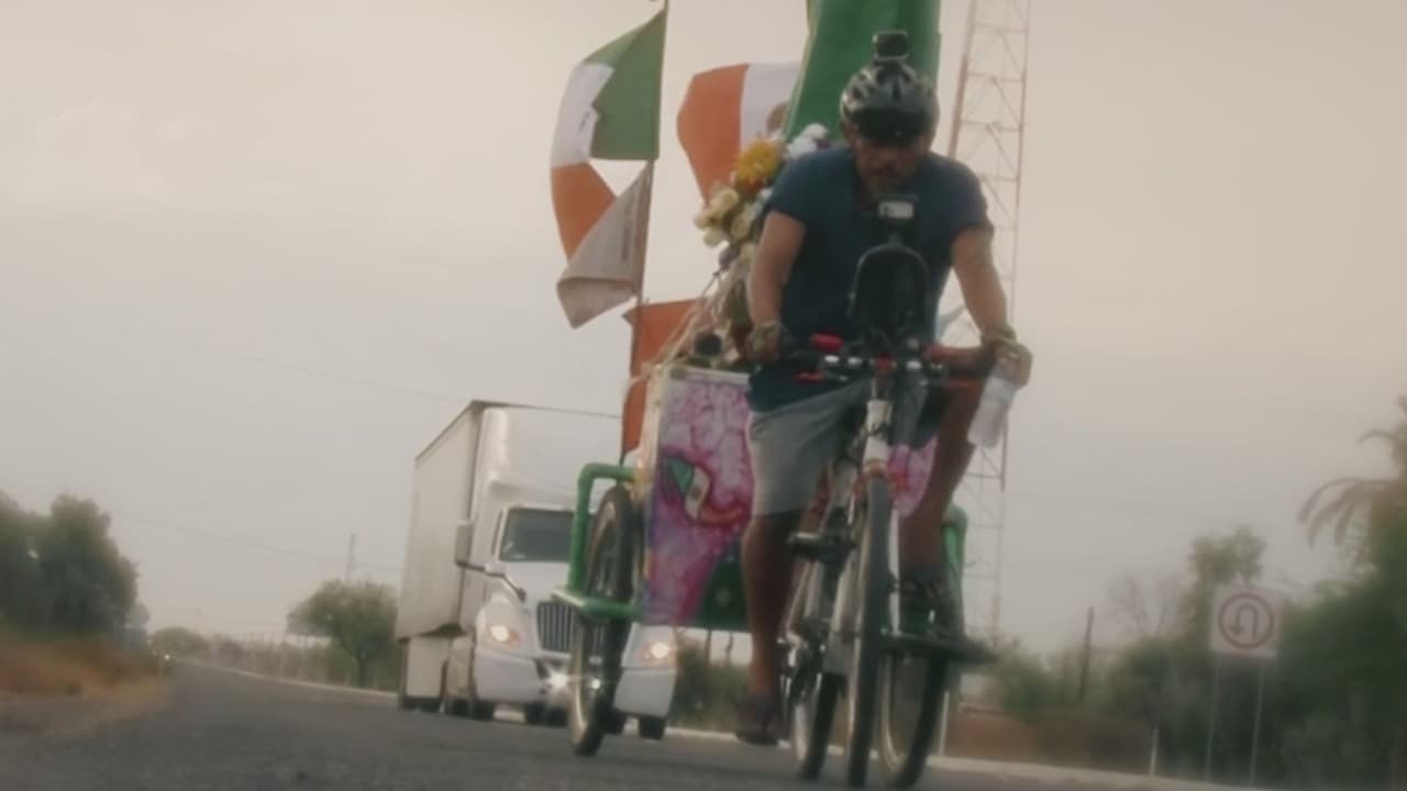 Mexicano discapacitado recorre más de 7,000 millas en bicicleta junto a un altar de la Virgen de Guadalupe