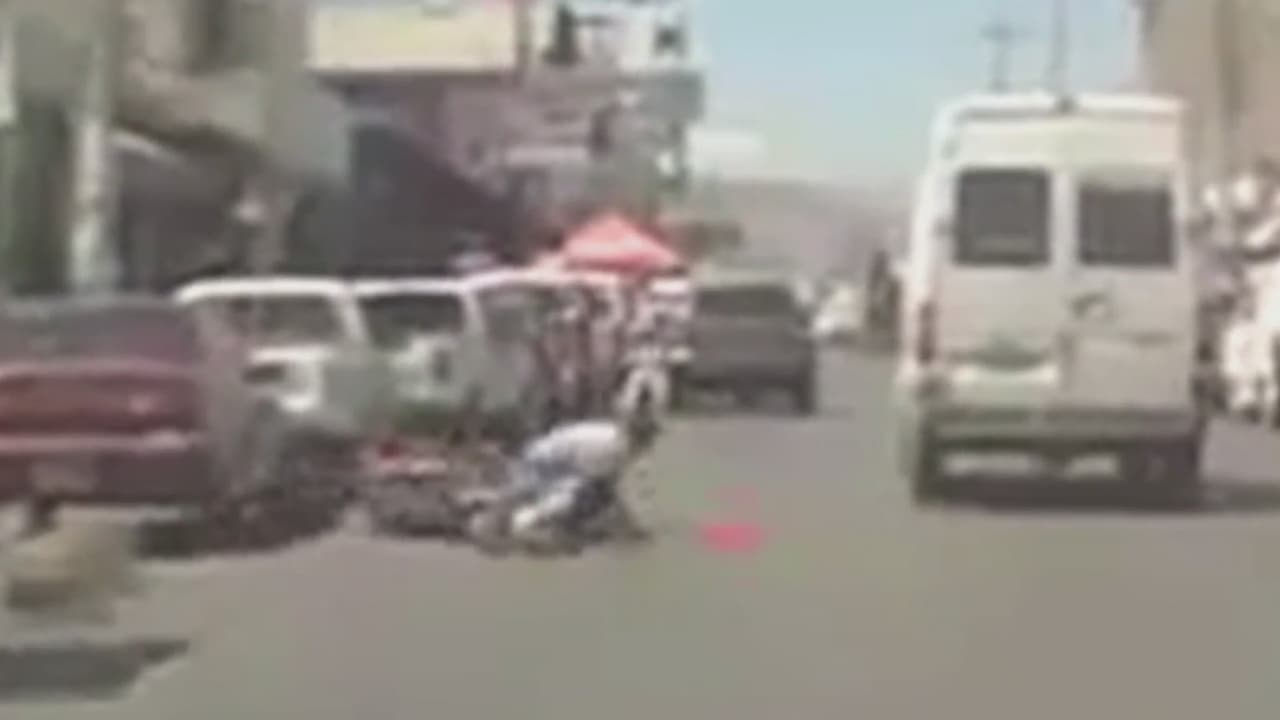 El hombre no pudo detenerse y callo sobre la mujer que sólo sufrió heridas leves.