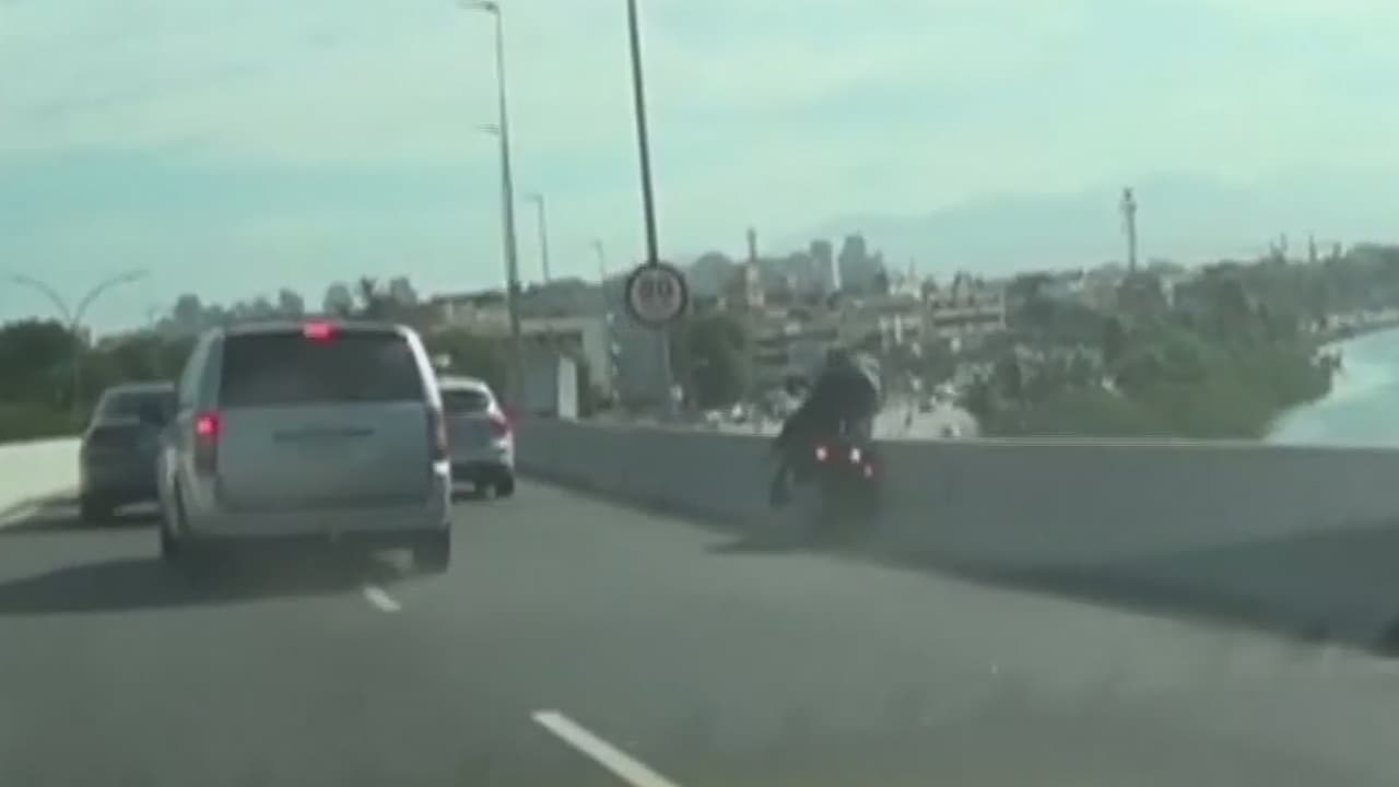 Las imágenes muestran como fue impactado cuando transitaba sobre un puente y cayó al vacío tras estrellarse contra el muro de contención.
