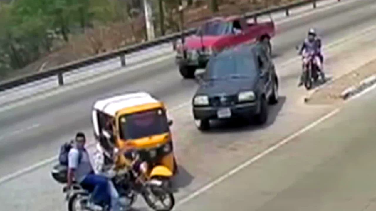 Motociclista salió volando por el aire tras ser impactado por otro vehículo en Guatemala