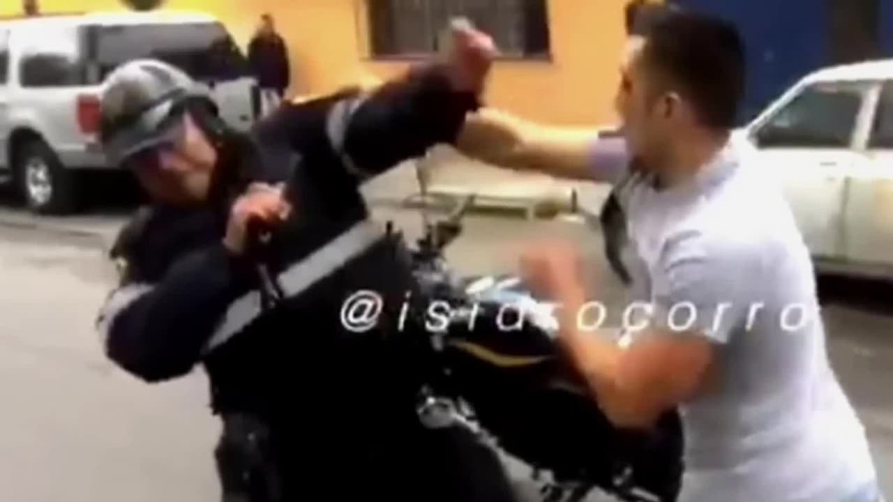 Motorista enfurecido golpea a un policía sin que este se defienda