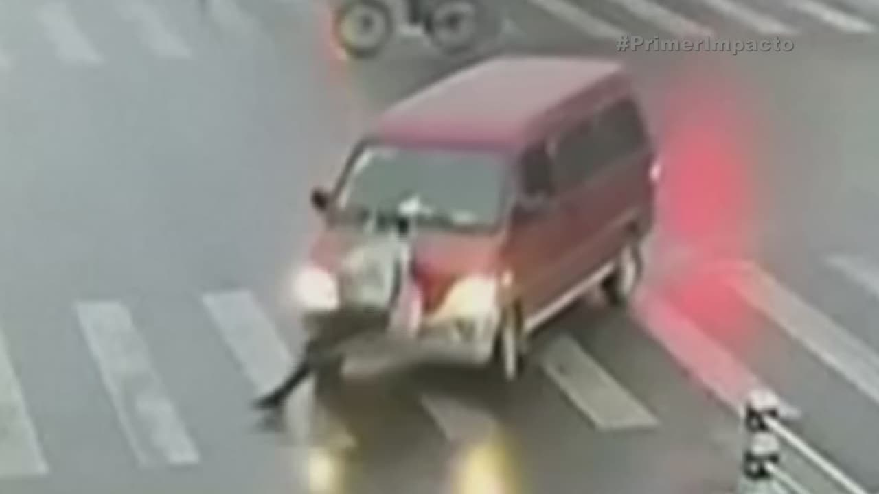 Personas cercanas al accidente ayudaron a sacar a la mujer de abajo del furgoneta.