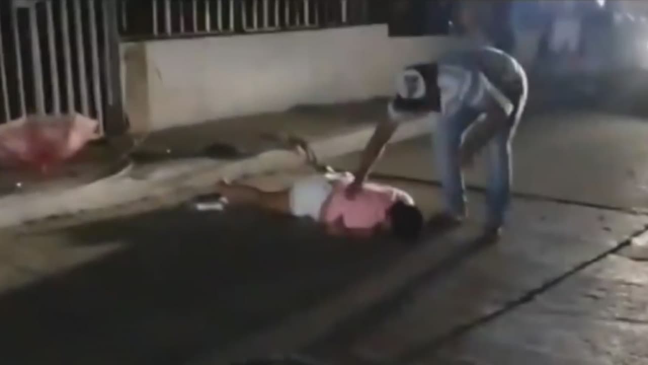 El esposo de la mujer en Barranquilla, Colombia, intentó quitarle con un palo el cable del tendido eléctrico roto con el que se topó.