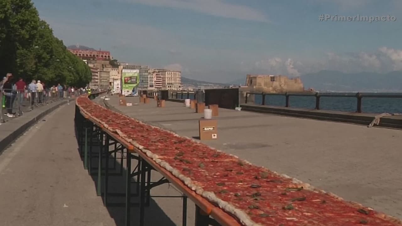 Más de 400 cocineros entraron al libro de Récord Guinness luego de elaborar la pizza más grande del mundo, nada menos que de 6 mil pies de largo.