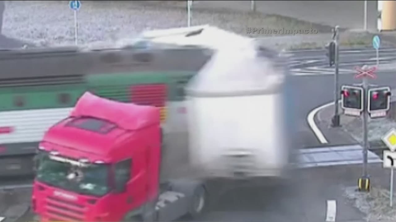 En conductor no hizo caso a las luz en rojo y el ferrocarril le arrancó la parte trasera del camión.