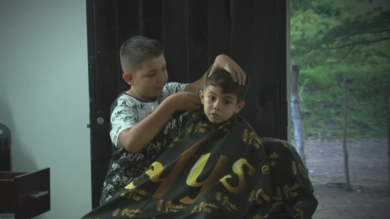 A sus 12 años de edad, el pequeño Eduardo atiende su propia barbería y corta el pelo a niños, jóvenes y adultos. Lo hace, según dijo, para aportar dinero a su familia.