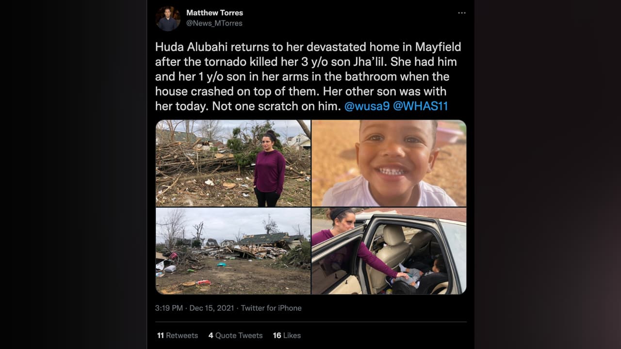 "Era divertido y cariñoso": Un niño muere en los brazos de su madre y bajo los escombros provocados por un devastador tornado
