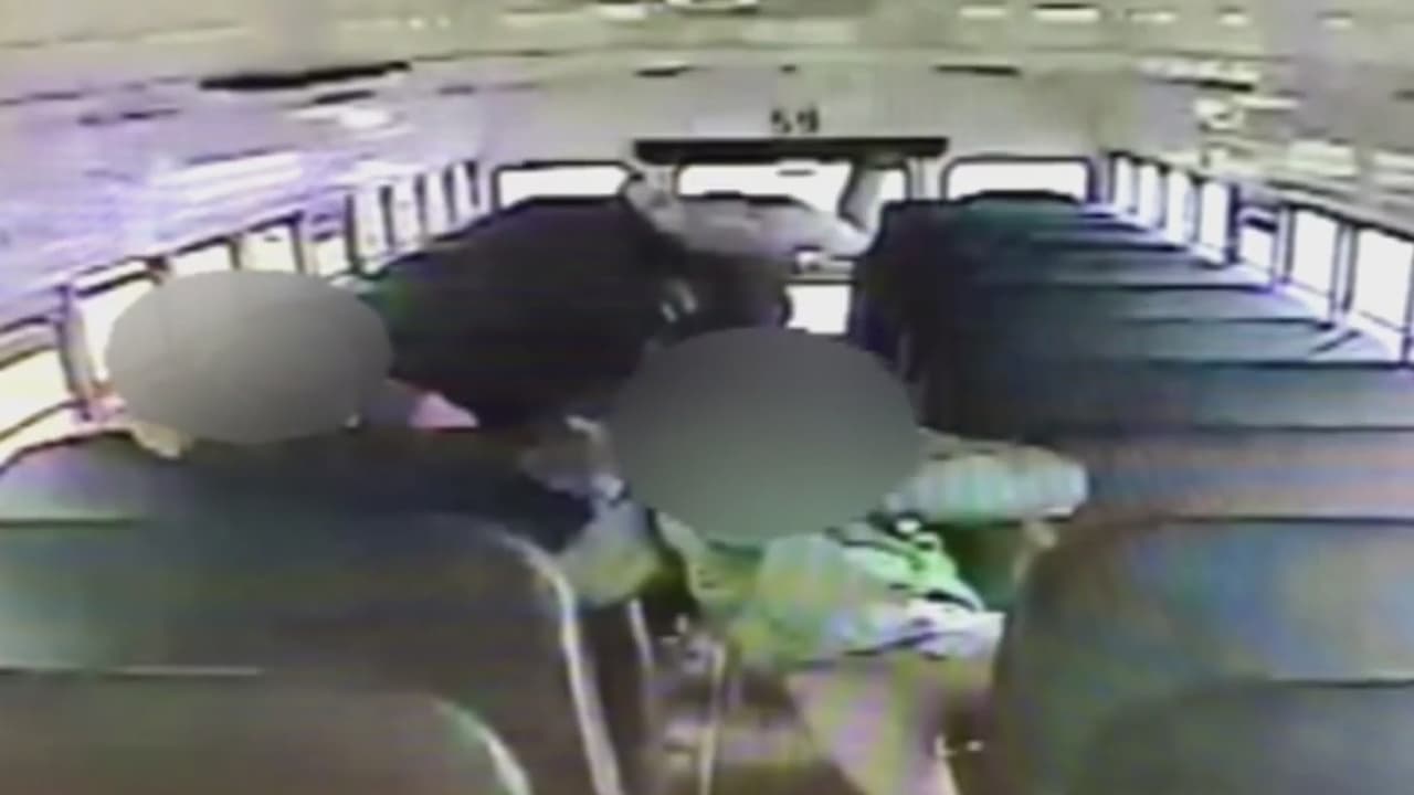 Niños salen disparados de sus asientos cuando un auto se estrella contra un autobús escolar
