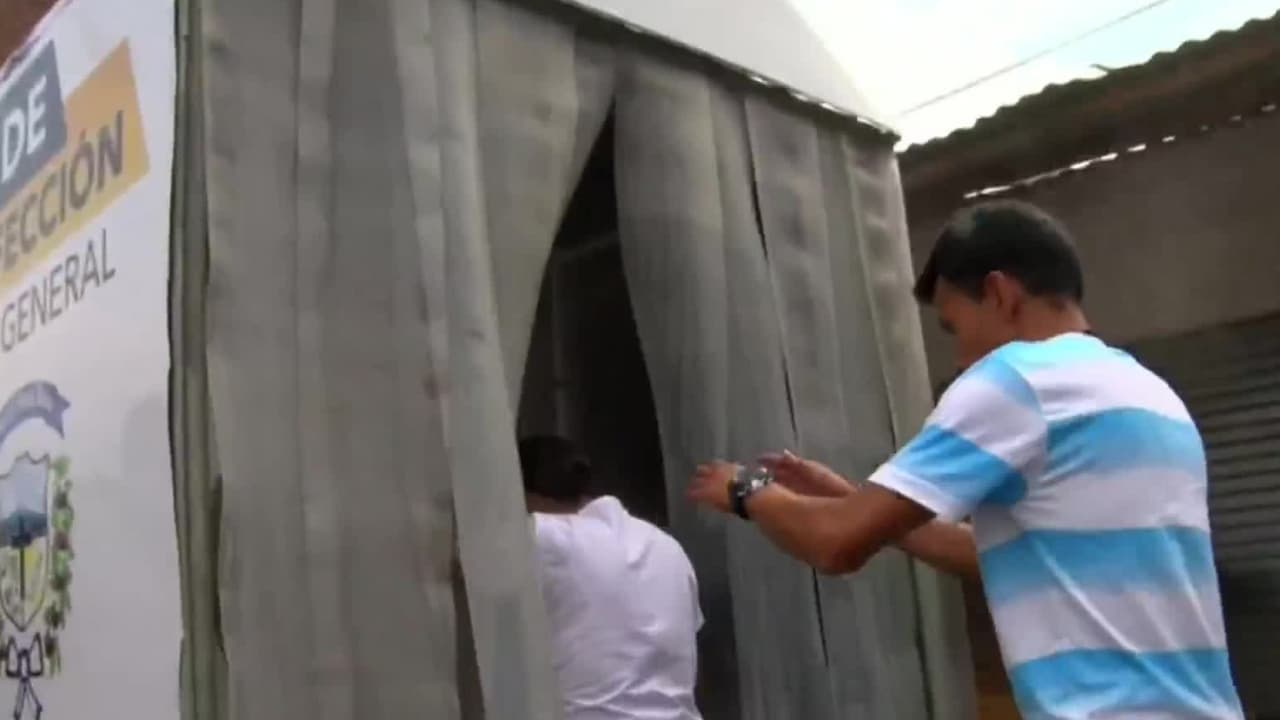 No permiten que nadie entre a este pueblo si no pasa por 'el túnel de desinfección'