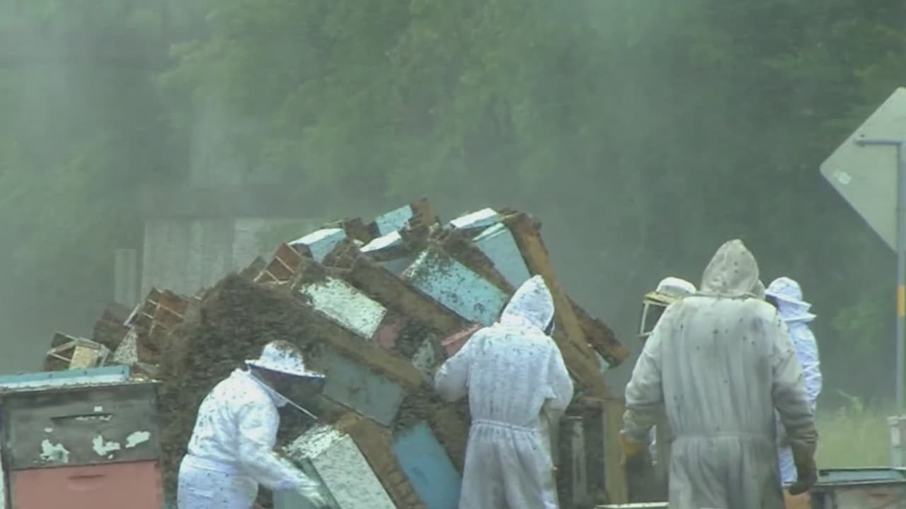 Nube de abejas invade una carretera después de que el vehículo que las transportaba se accidentara