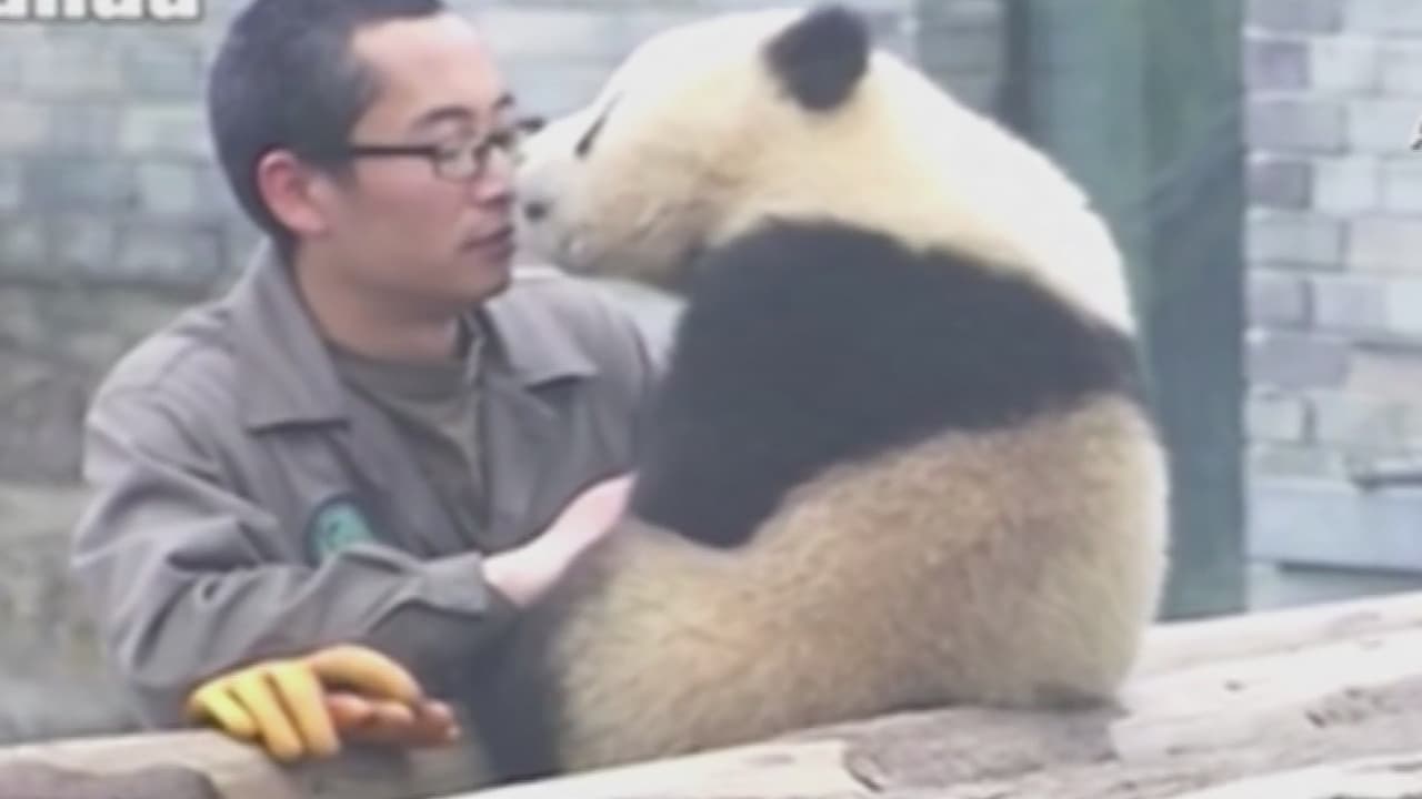 Este pequeño panda fue captado en China cuando le daba besos a su cuidador y padre.