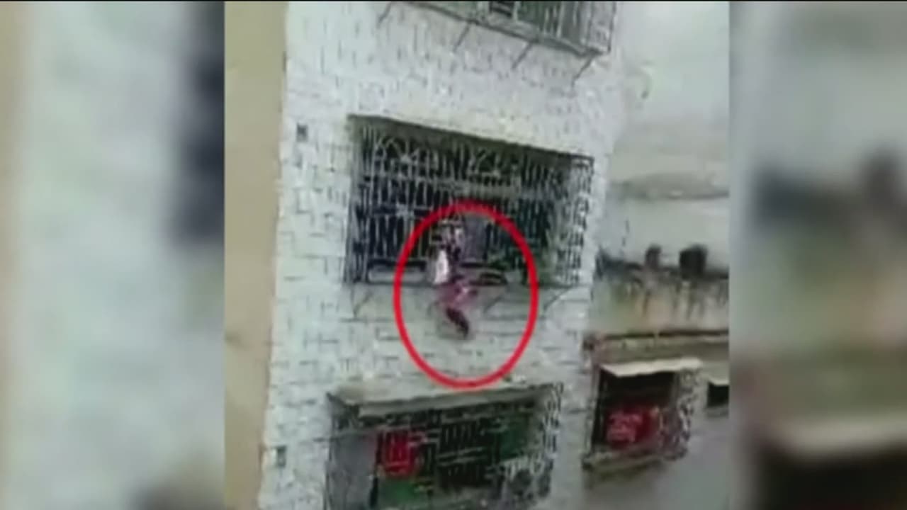 Pánico en China por una niña que estuvo a punto de caer al vacío desde un balcón