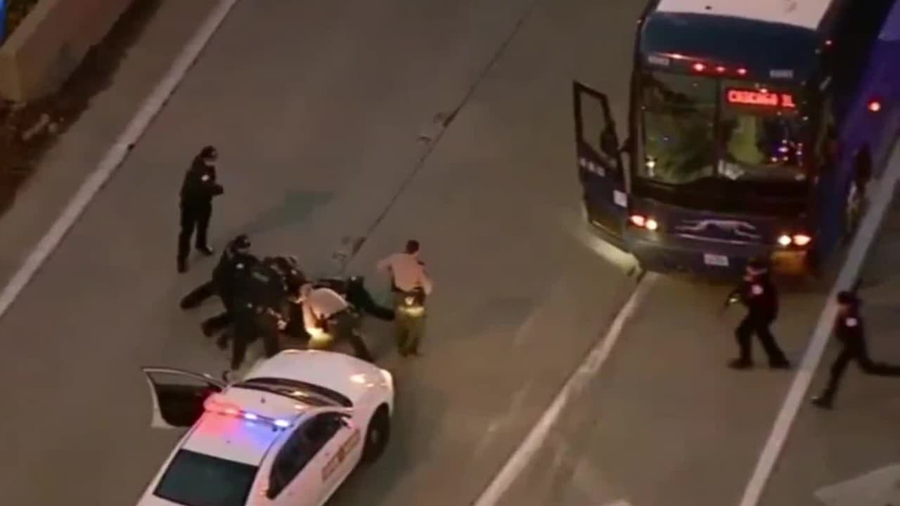 El conductor del vehículo llamó a la policía y el sujeto fue arrestado en plena autopista. Afortunadamente, se trató de una falsa alarma.
