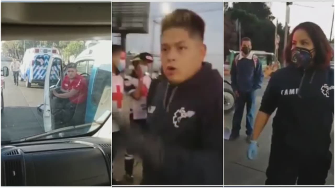 Mientras unos trasladaban a un herido en una ambulancia fueron rodeados por otros paramédicos que les cerraban el paso y luego fueron agredidos. La discusión se originó porque los de la Cruz Roja Mexicana ofrecieron llevar gratuitamente al motociclista lesionado, pero los otros que ganan dinero por cada paciente se enfurecieron.