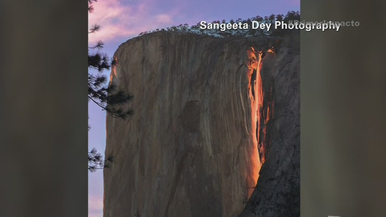 La ilusión óptica deja ver lava en las paredes de un acantilado en el Parque Nacional Yosemite.