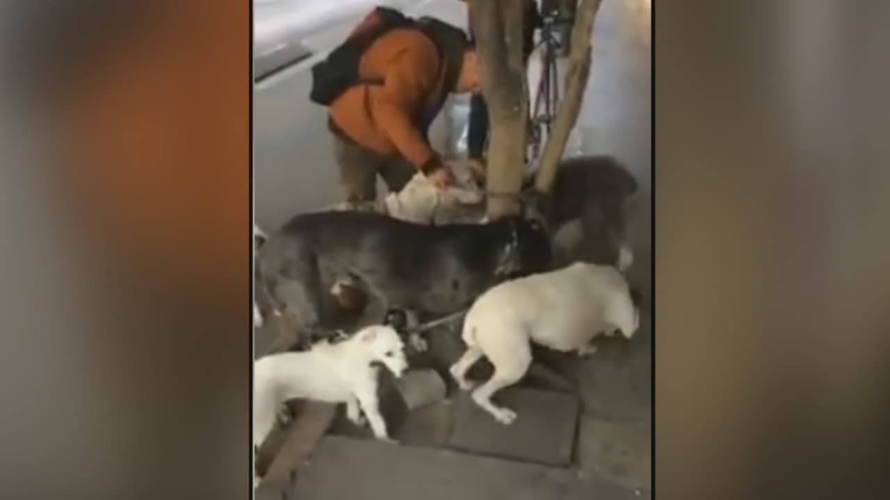 El video del abuso se volvió viral en las redes sociales. El joven dejó a los perros amarrados a un árbol mientras hacía unos recados. La mujer que subió el video a las redes lo hizo a modo de denuncia.