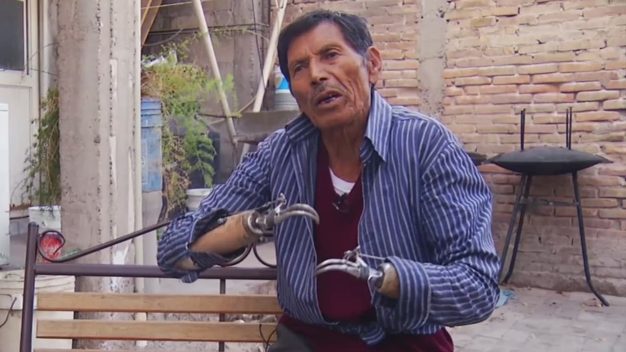 Perdió las manos en un accidente, pero unas prótesis de acero le permitieron construir su casa