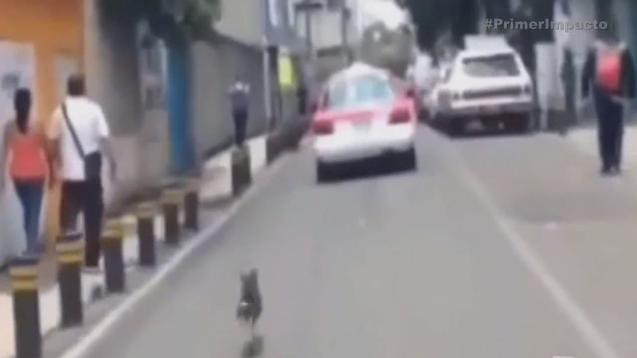 En México una perrita fue abandonada en una concurrida calle y corrió varias cuadras persiguiendo a un taxi, donde al parecer, viajaba la persona que la dejó en medio del tráfico.