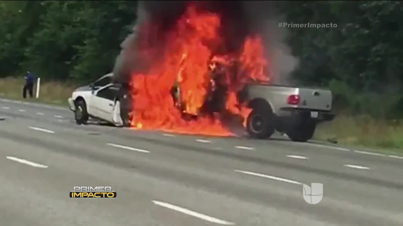 Policía rescató a mujer de un vehículo envuelto en llamas