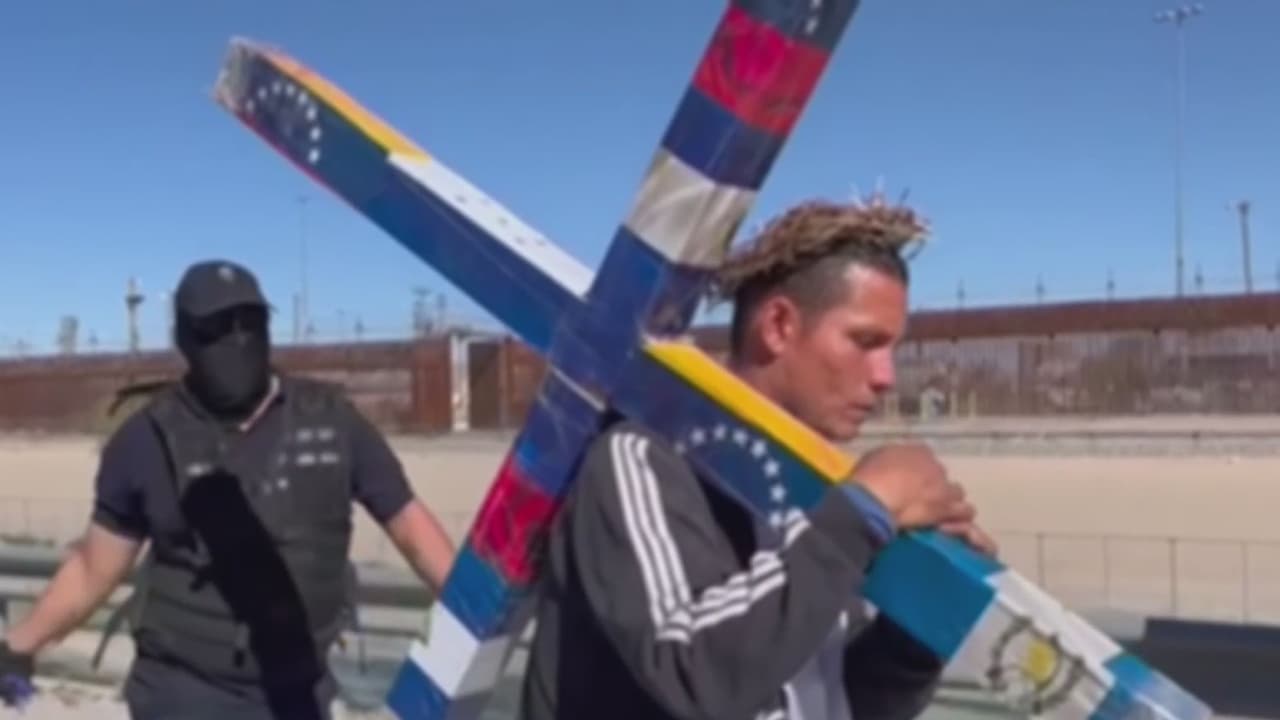 "Ponte en mis zapatos": migrantes realizan viacrucis en la frontera y exigen justicia