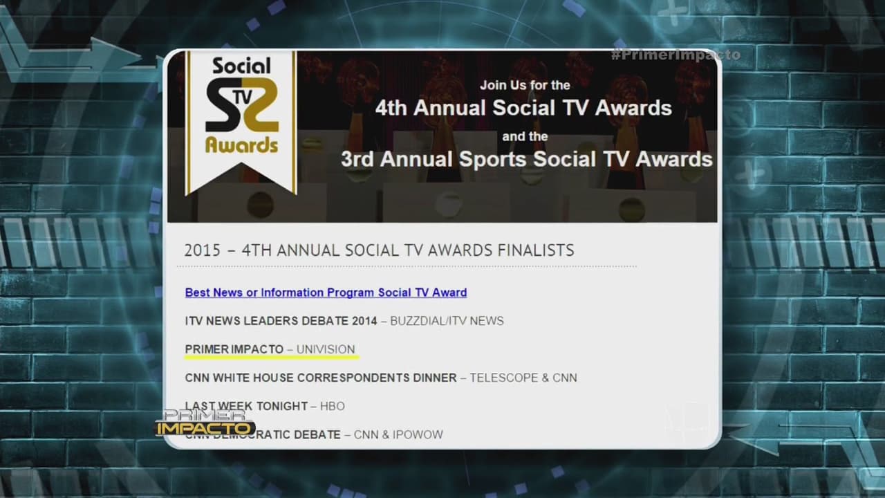Primer Impacto fue nominado como Mejor Programa de Noticias en la entrega de premios Social TV Awards por la integración en redes sociales.