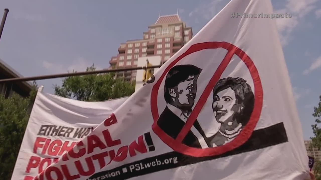 Hoy comienza la Convención Demócrata y en las calles de Filadelfia, miles de opositores a la candidata Hillary Clinton protestan contra su nominación.