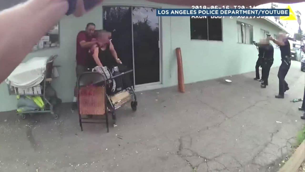 La policía de Los Ángeles respondía una llamada de emergencia porque un hombre había apuñalado a su pareja. Cuando los oficiales llegaron al lugar abrieron fuego contra el agresor y los disparos alcanzaron también a la mujer.