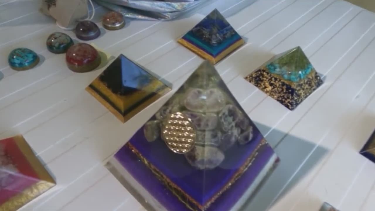 Una experta explica que las orgonitas, muchas veces en forma de pirámides y domos, son un compuesto de metal, resina y cristales de cuarzo que sirven como una antena transformadora y movilizadora de energía.