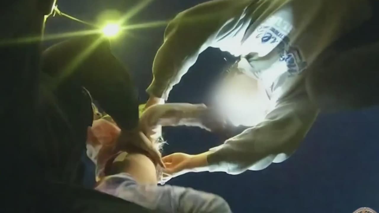 Una dramática escena fue captada por la cámara de un policía, que corrió en auxilio de una niña hispana que se asfixiaba en los brazos de su padre.