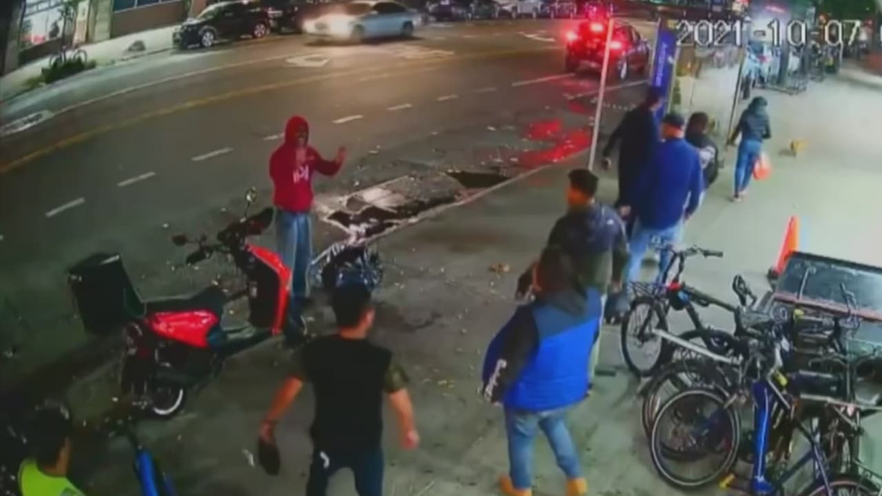 En video quedó grabado cuando dos hombres se acercan al repartidor de comida para intentar robarle. Sin embargo, no lograron su cometido porque la víctima recibió la ayuda de sus colegas en la calle.