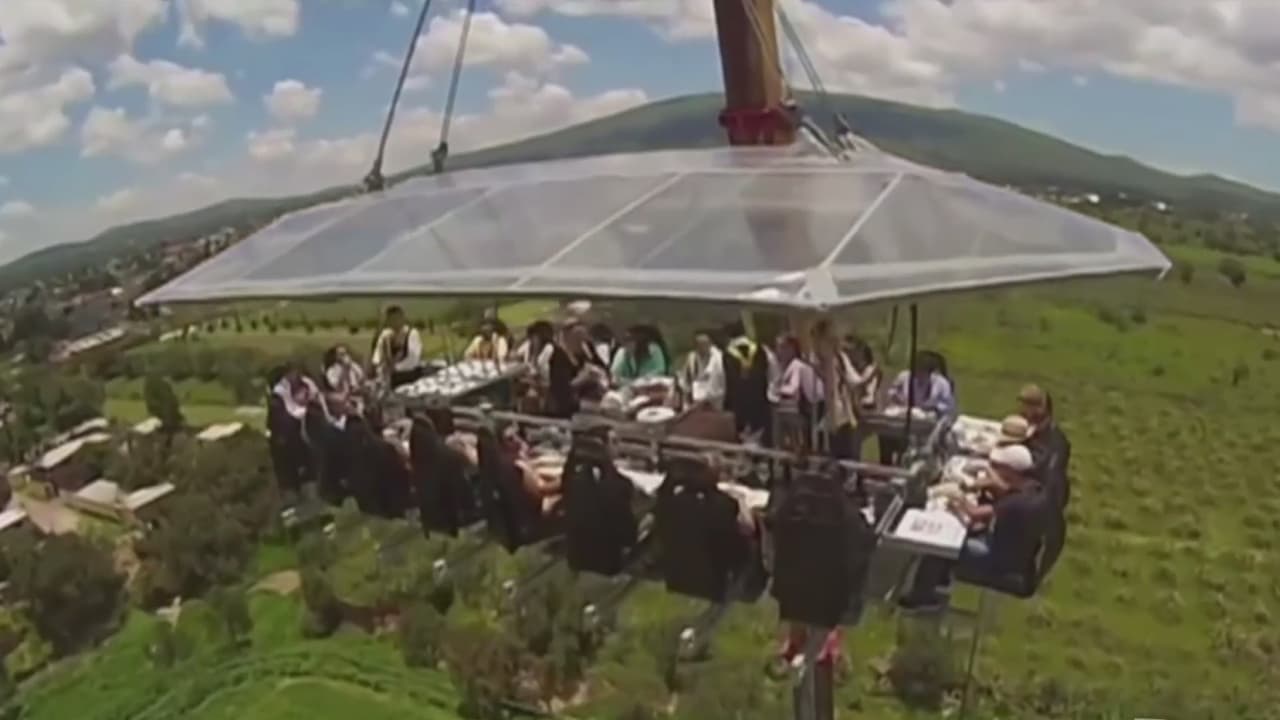 El extremo restaurante sirve los alimentos en un comedor que se eleva, con ayuda de una grúa, hasta alcanzar los 50 metros de altura.