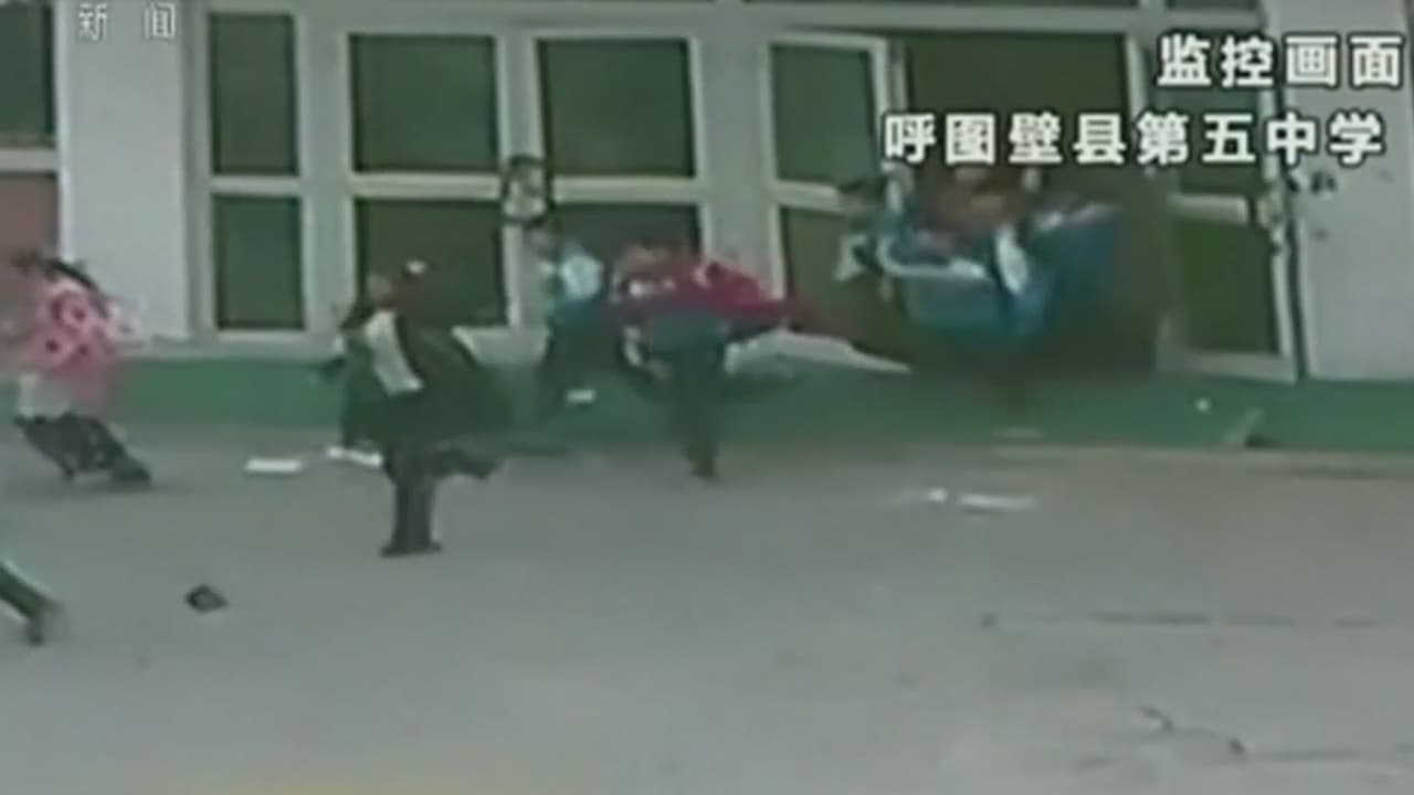 Las imágenes muestran a los asustados alumnos huyendo de un terremoto de magnitud 6,2 en la escala de Richter, que sacudió los cimientos del centro escolar, en China; allí muchas casas quedaron destruidas y colapsó parte de una montaña.