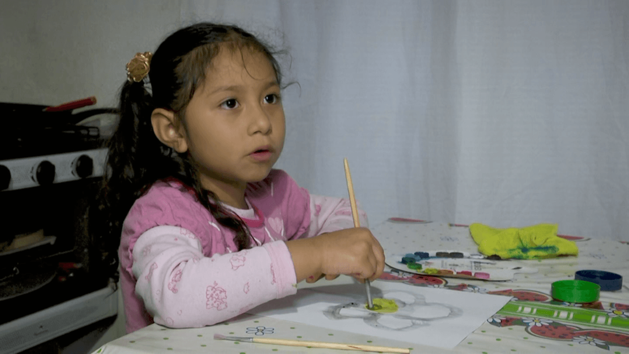 La pequeña quedó sin madre cuando un hombre la atacó y la mató en Ciudad de México. Ahora, para escapar de la tristeza ella pinta con el fin de sentirse un poco cerca a su madre fallecida.