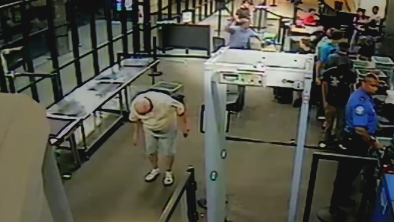 Las cámaras de seguridad captan cuando el hombre se acerca con una bolsa en la mano a los pasajeros que hacen fila para la revisión del equipaje, y empieza a rociarlos con un aerosol anti-avispas y luego saca un machete y ataca con furia a las personas que huyen despavoridas. Un agente detuvo el ataque con tres disparos mortales.