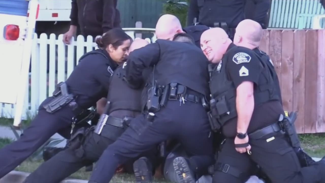 Según testigos, el hombre estaba atacando a transeúntes frente a un edifico y pateando las puertas de los apartamentos. El suceso está bajo investigación.