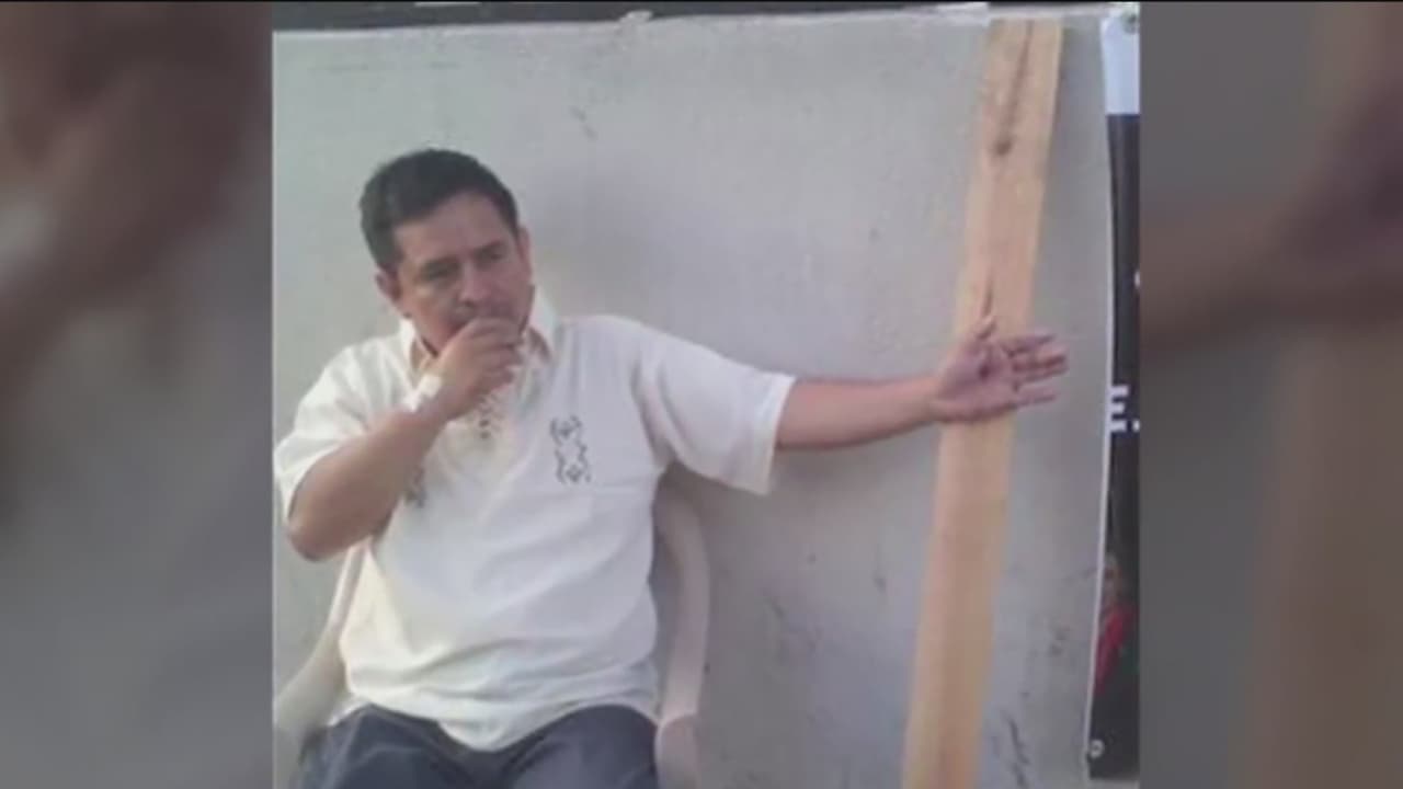 Sujeto se clava una mano en la fachada de un tribunal de justicia en Guatemala para protestar