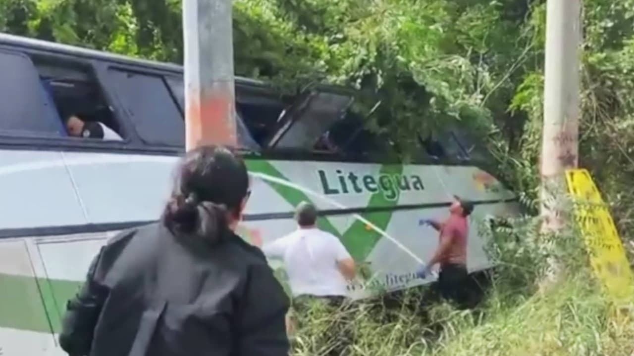 Un autobús se habría quedado sin frenos y logró esquivar varios autos, pero terminó cayendo por un barranco en Guatemala. Los pasajeros quedaron atrapados en el vehículo, por lo que tuvieron que ser sacados por algunas ventanas y 18 de ellos están hospitalizados. Aunque los bomberos intentaron salvarlo, el conductor falleció.