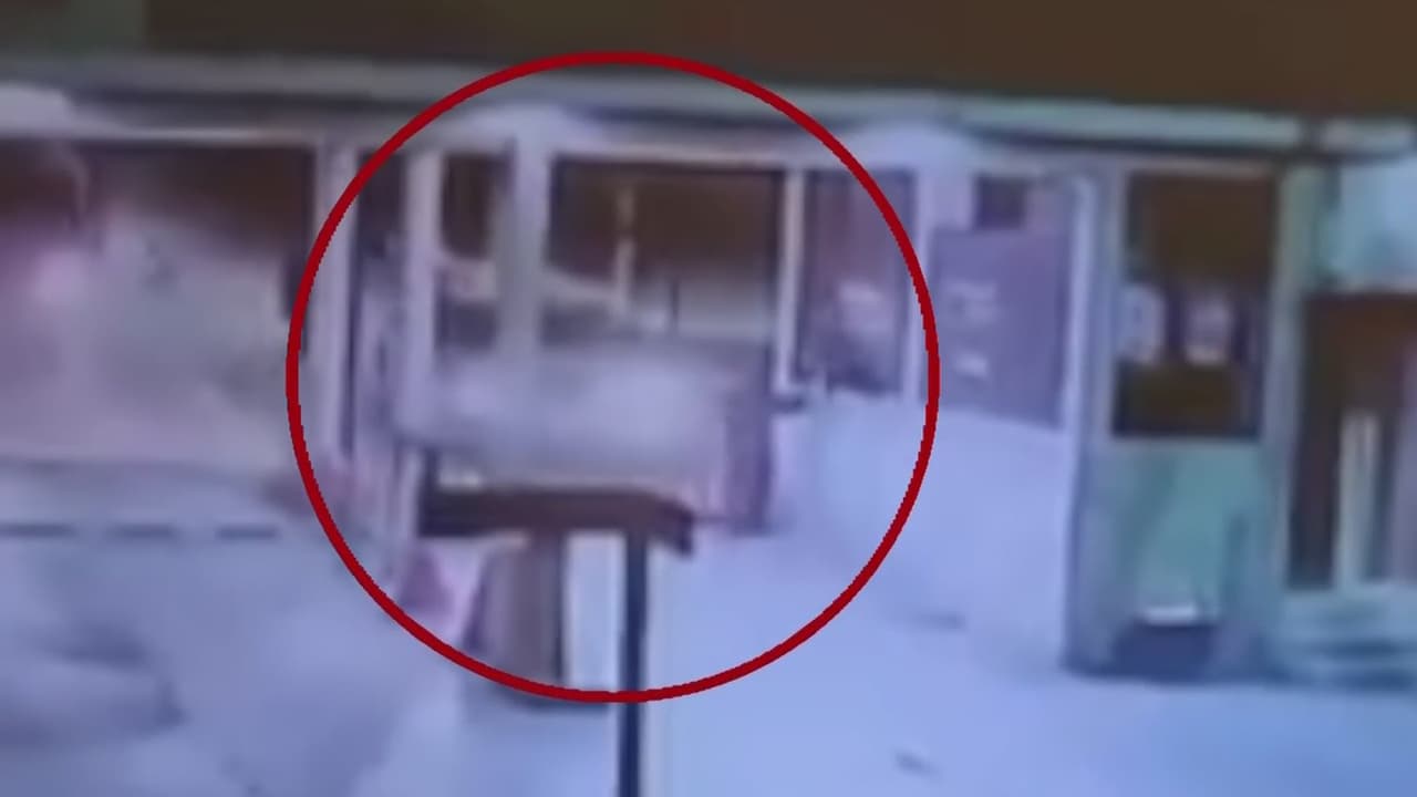Una cámara de seguridad captó cómo el vehículo derribó la barrera y le pasó por encima al uniformado.