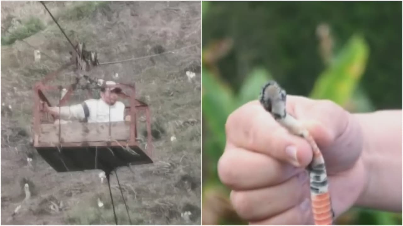 Un día de mala suerte: le pica una serpiente venenosa y quedó atrapado en las alturas cuando lo trasladaban al hospital